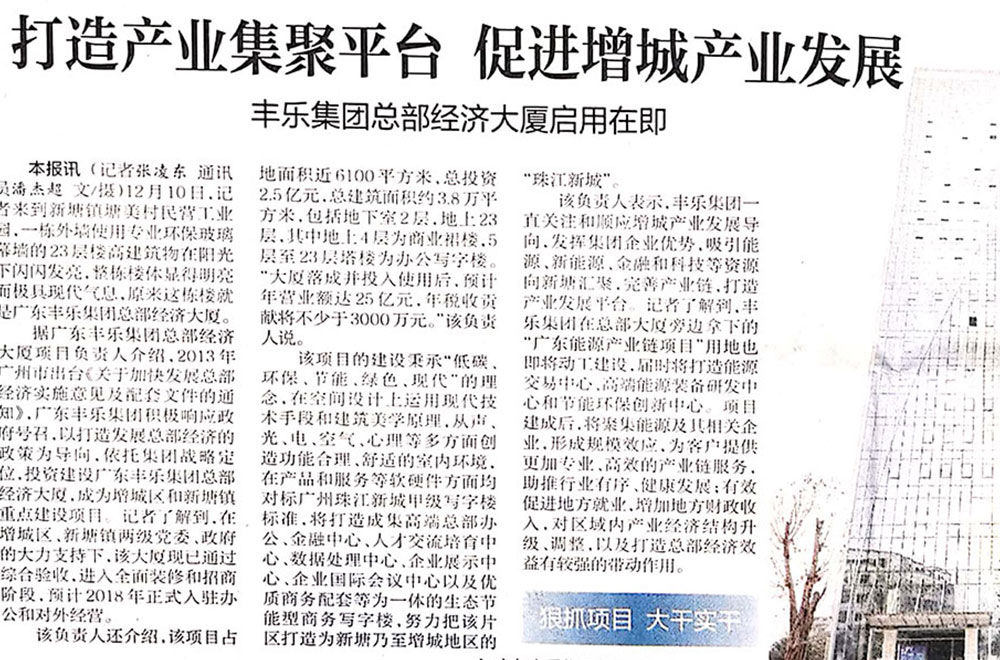 【增城日报】打造产业集聚平台·促进增城产业发展——九游在线总部经济大厦启用在即